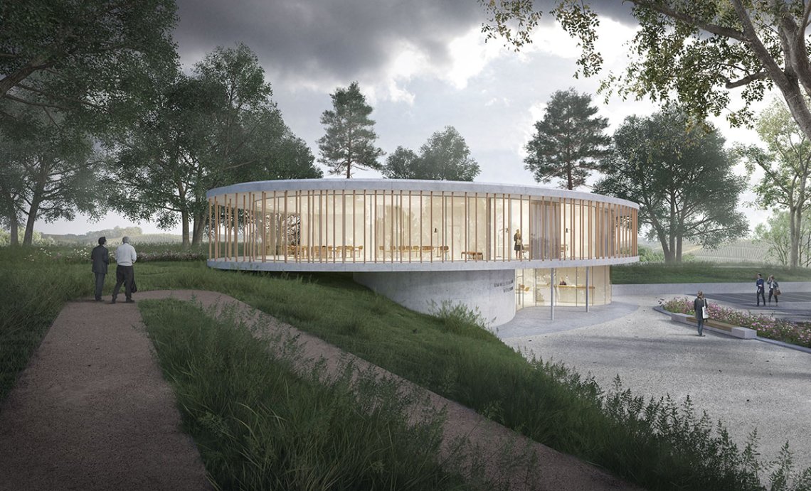 Der zweigeschossige, ovale Neubau der Stadtreiniger liegt an einem Hang und kann so ebenerdig an den Landschaftspark anknüpfen. Das in den Hang eingelassene Erdgeschoss, das im Grundriss amöbenförmig daherkommt, dient als Haupteingang und Ausstellungsfläche.
